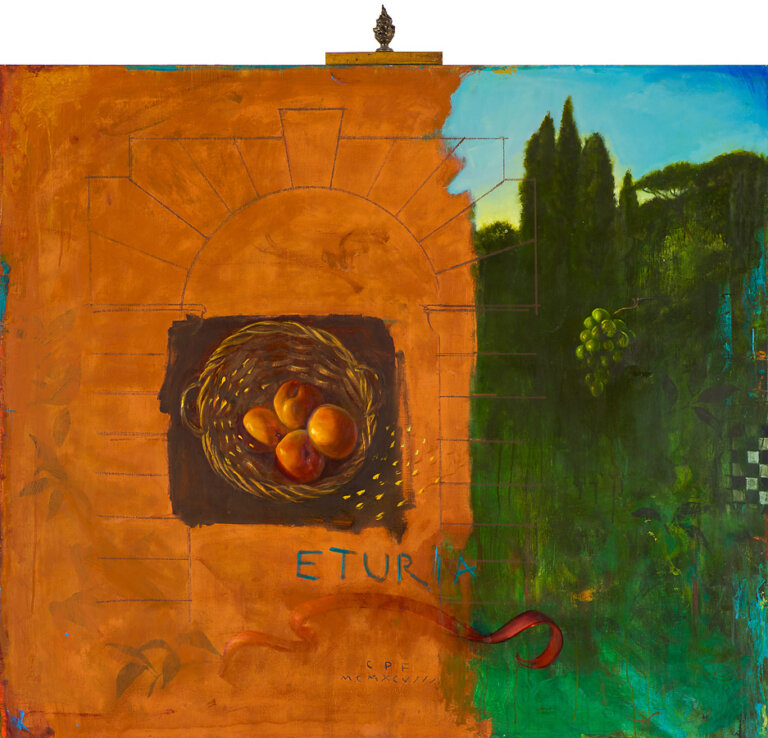 Born in Pittsburgh, Pennsylvania to Canadian parents and raised in New England, Pelley attended Syracuse University and received his BFA summa cum laude from Arizona State University. He has traveled extensively across Europe, India, North Africa, Mexico and China, and now divides his time between New York City and Rome, Italy. Christopher Pelley’s paintings reflect these diverse cultural and geographic experiences with the interplay between the real and the imagined, identity and history, and myth and memory in the work. Julie Sasse, Curator of Modern and Contemporary Art at the Tucson Museum of Art, Arizona has written: “Richly painted and abundant with metaphoric imagery the works are not only aesthetically pleasing but intellectually complex”. Critic Joyce B Korotkin adds “[Pelley] forces the past and present to co-exist on the same plane echoing the manner in which successive civilizations rise and fall on top of one another.”